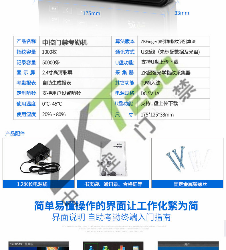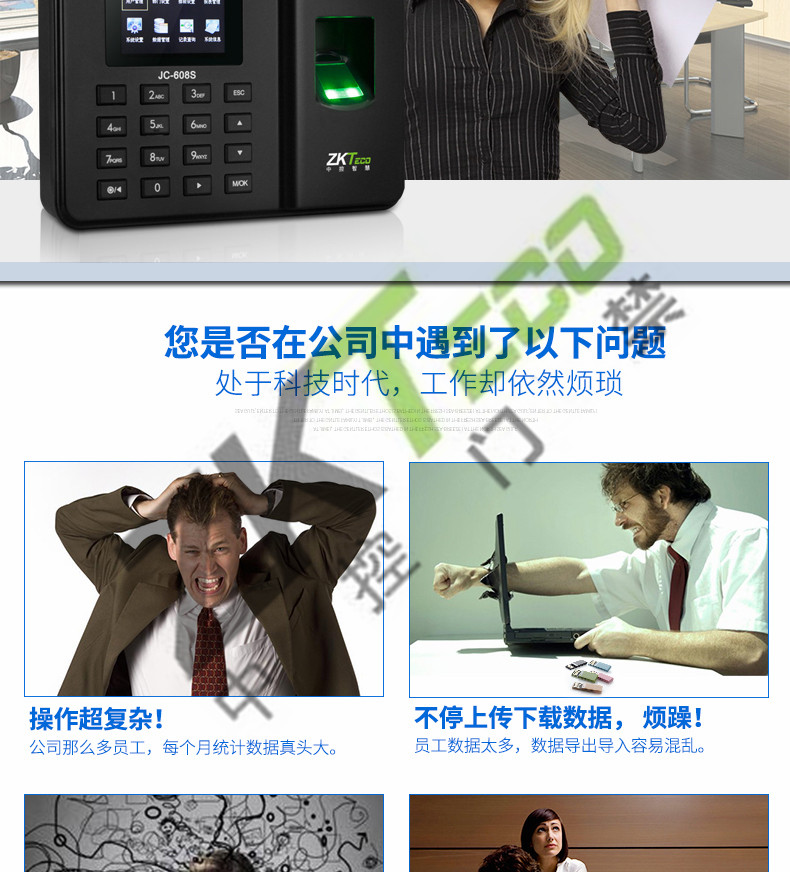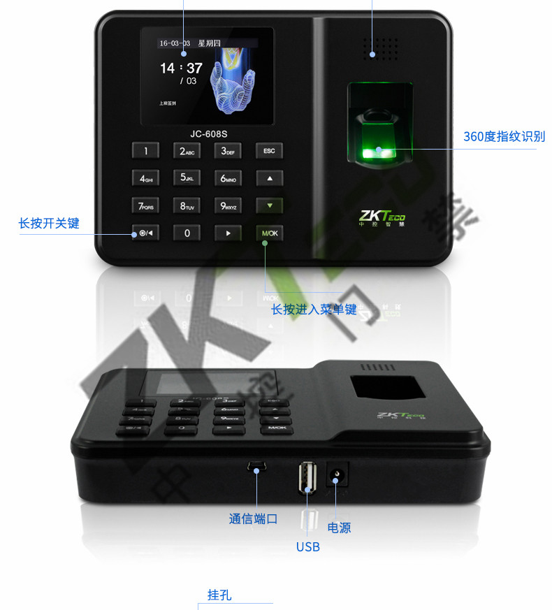 JC-608S指紋考勤機 高清彩屏打卡機