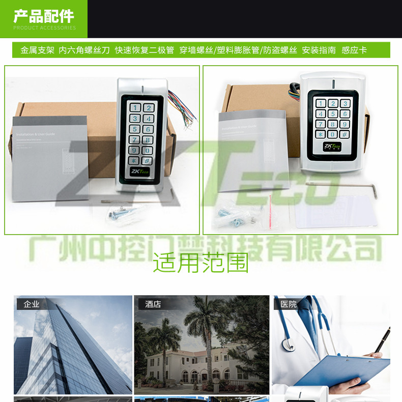金屬刷卡門禁一體機R370/R380支持支持常規非接觸式ID卡、IC卡,二代證以及HID iclasss卡等,是目前比較先進的單門門禁控制器之一。采用獨特的金屬外殼設計,靈巧的鍵盤面板操作,內置高檔微處理器,抗干擾能力強,安全性和可靠性極高,可為1000個用戶提供強大的安全保障。具有超低功耗、夜光鍵盤、獨立密碼、韋根輸出、輸出短路保護、門磁報警、防拆報警、開門按鈕、門鈴接口、安全級別設置等強大功能,使用非常方便,可廣泛應用于家庭、辦公室、住宅等。